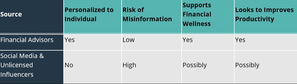 Social media platforms and influencer content are not inherently bad, but they are unregulated. Anyone with a camera and confidence can offer "advice" without any credentials. This opens the door to the kind of misinformation that can lead employees to make costly mistakes.